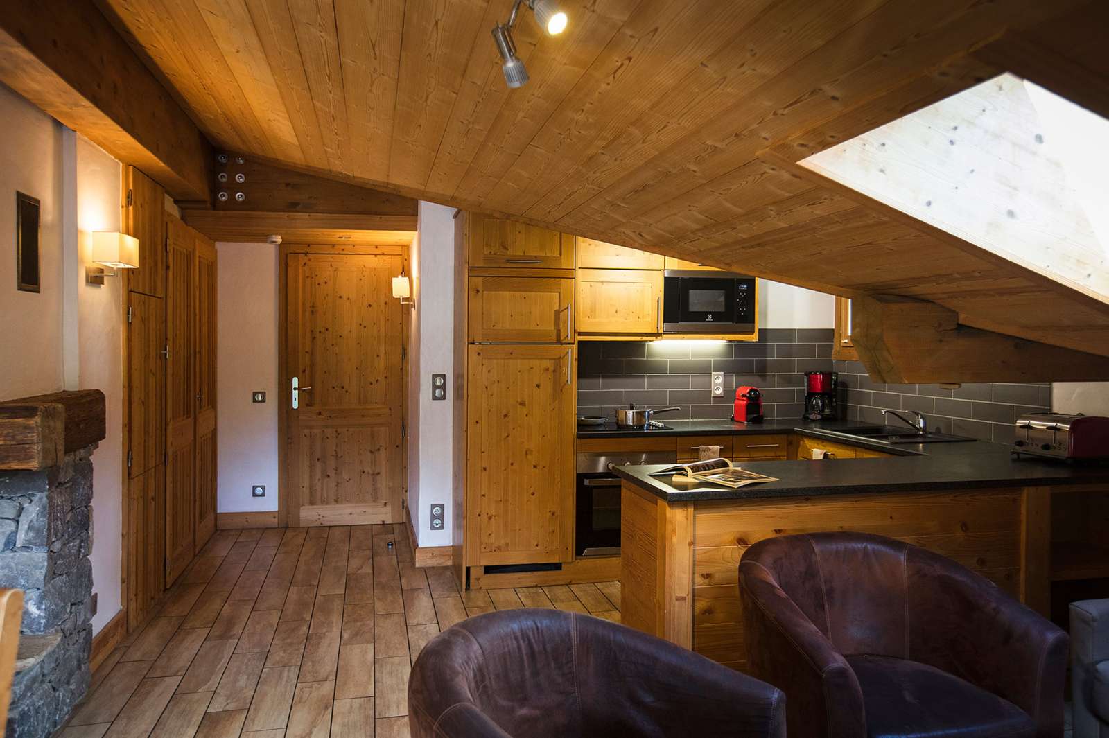 35 m² environ, séjour banquette lit 2 personnes, coin montagne 2 lits superposés.