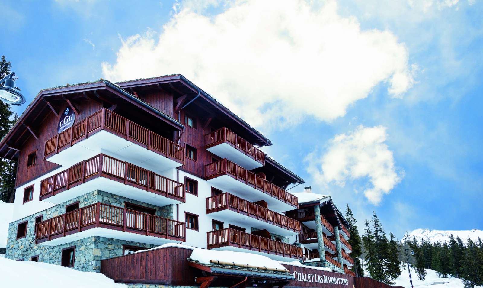 A 300 m du centre station, à 400 m des remontées mécaniques, cette résidence de 33 appartements répartis dans 2 chalets a une vue exceptionnelle sur la vallée et le Mont-Pourri.
