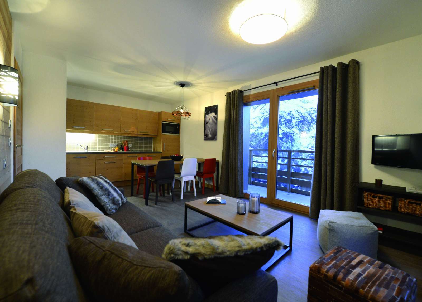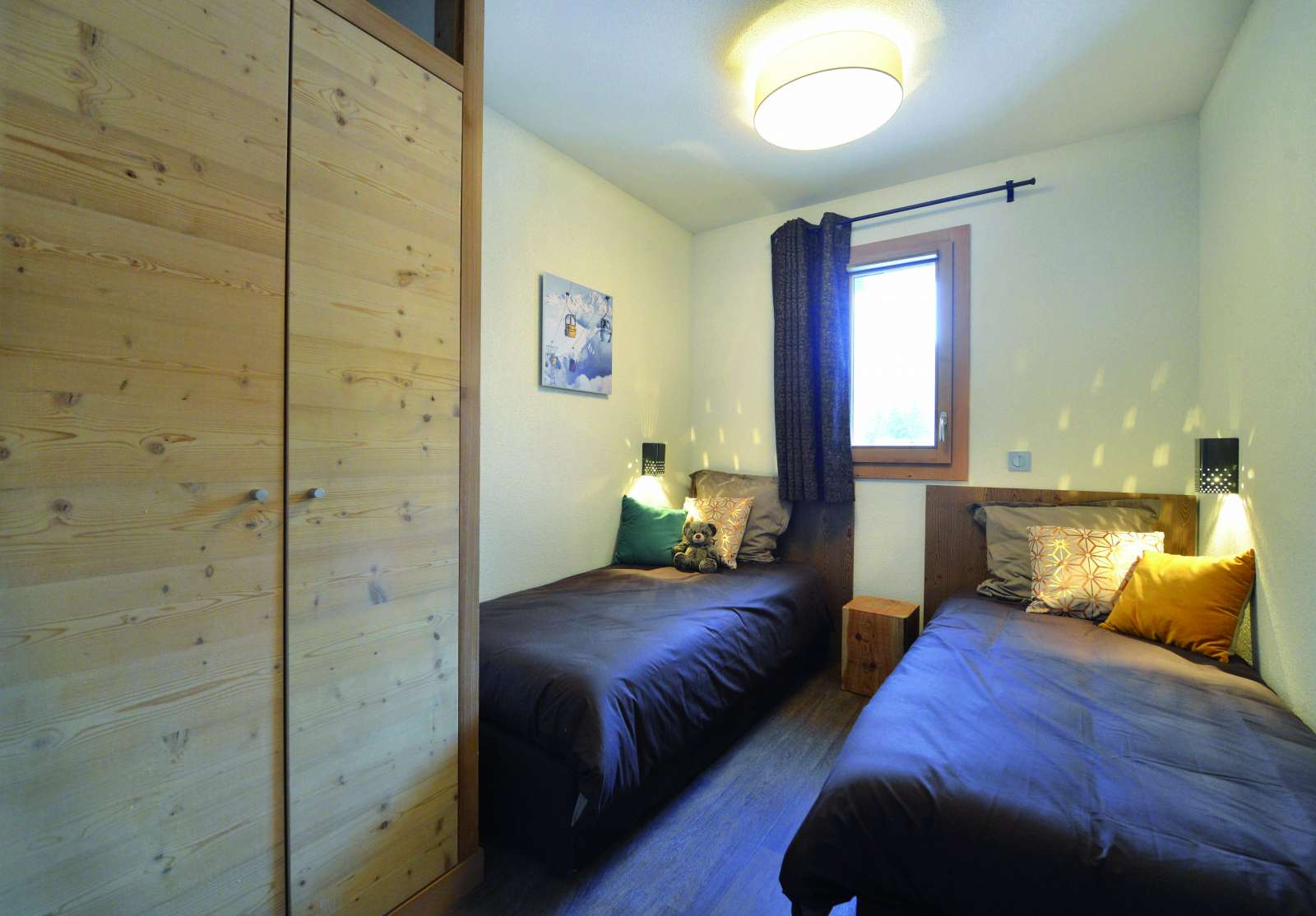58/65 m², séjour avec canapé-lit 2 personnes, 2 chambre 2 lits 1 personne, petite chambre 2 lits 1 personne ou 2 lits superposés, une salle de bains + une douche Vue Montagne
