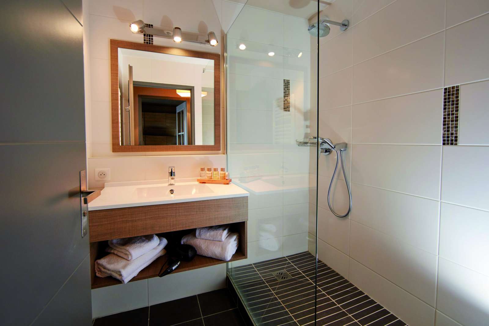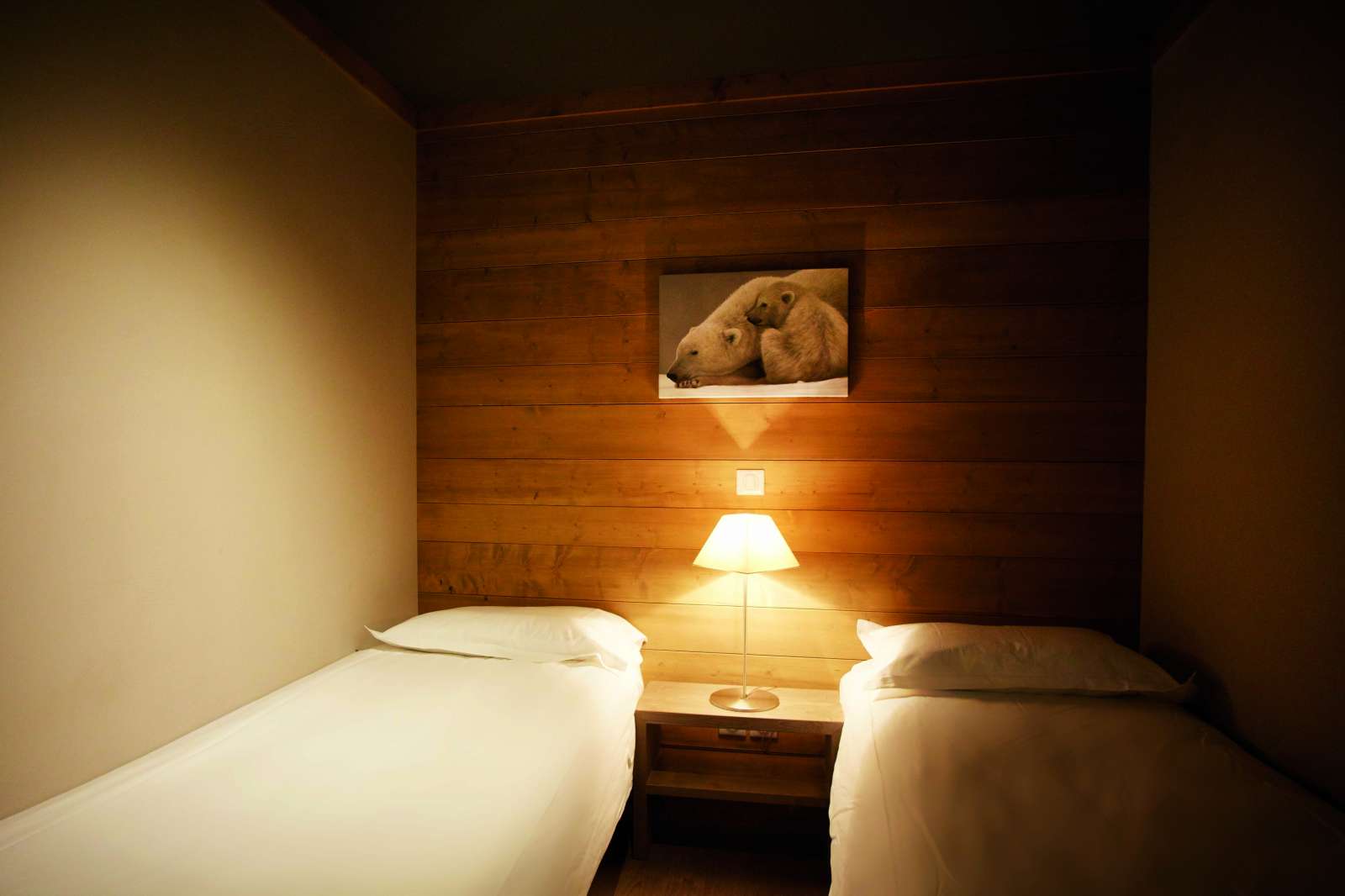 75 m² environ, un séjour avec une banquette lit gigogne (2 lits 1 personne), une chambre 1 lit 2 personnes, 2 chambres 2 lits 1 personne, une salle de bains + une douche (Contemporain).