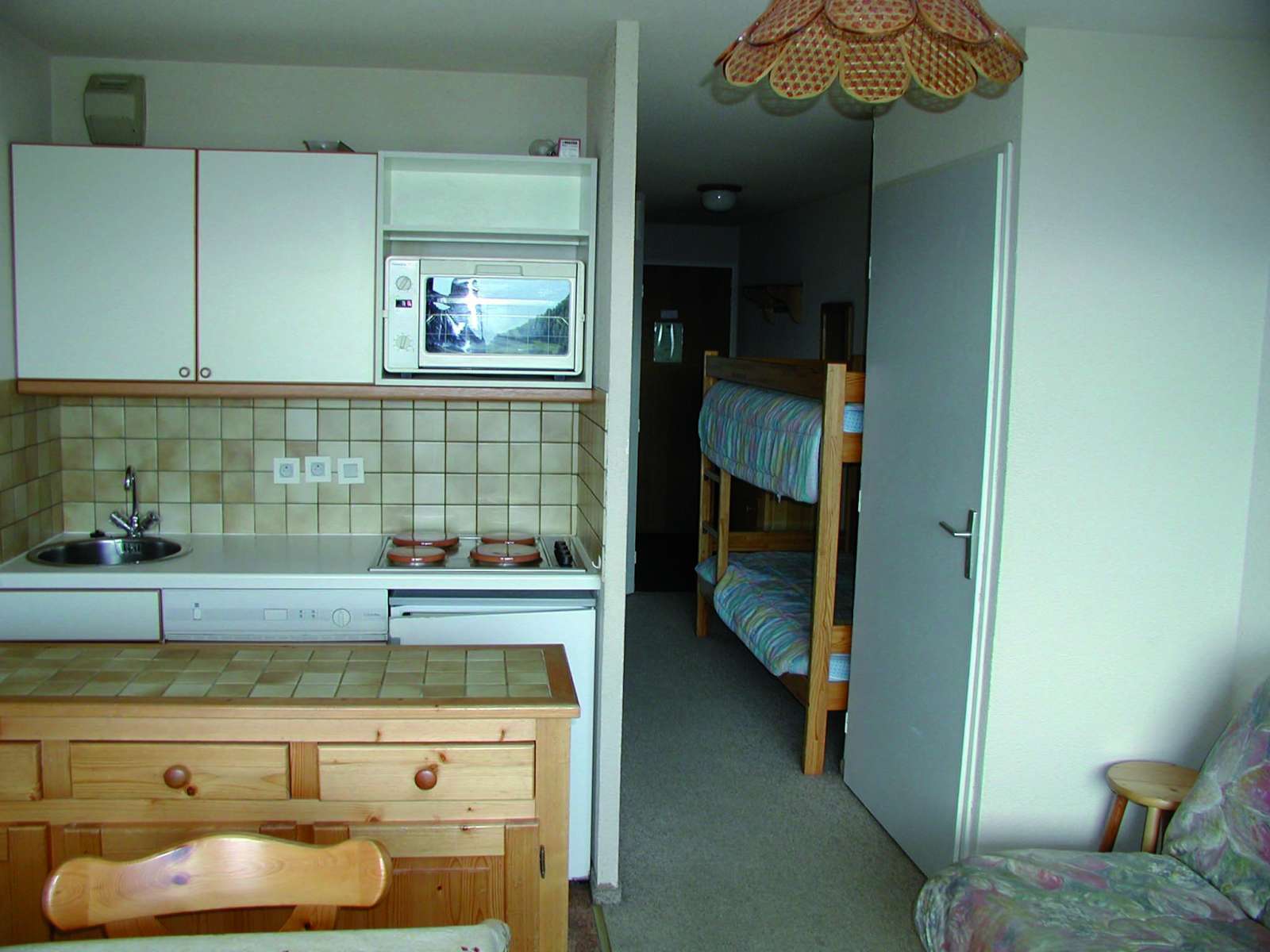 20 m² environ, un séjour avec un canapé-lit 2 personnes ou canapé gigogne 2 personnes, un coin montagne avec 2 lits superposés.