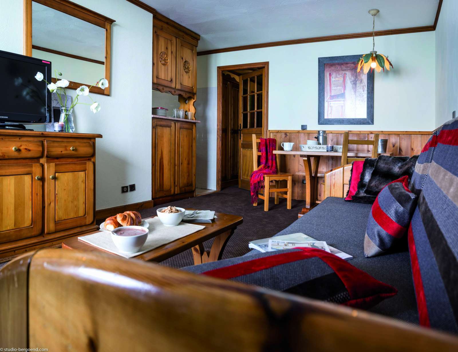 45 m² environ, un séjour, une chambre avec 1 lit 2 personnes, une chambre avec 2 lits 1 personne, une salle de bains (Résidence Valbel)