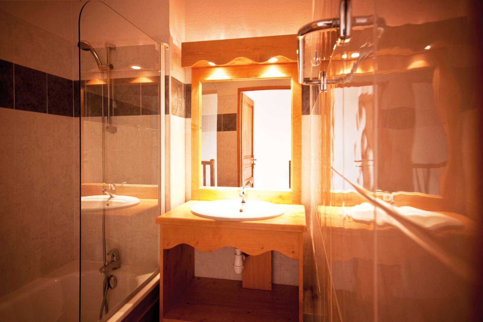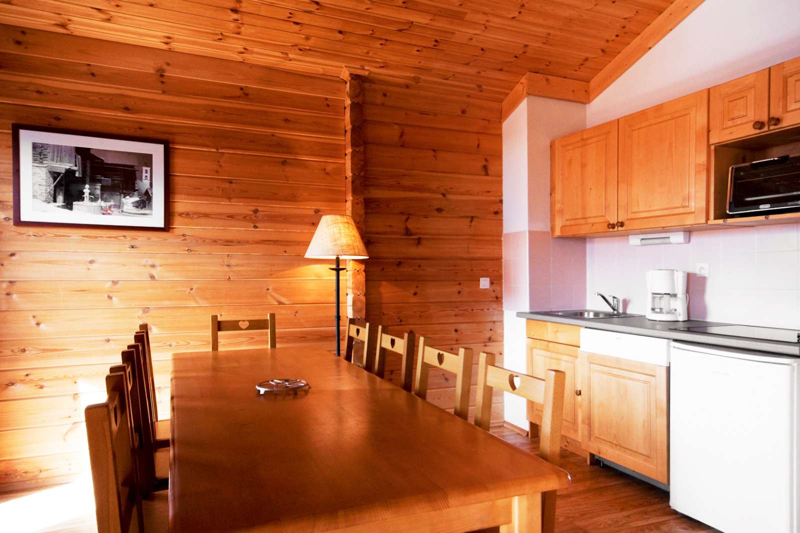 48 m² environ, un séjour avec un canapé-lit 2 personnes, deux chambres 2 personnes (dont 1 avec 2 lits superposés), une salle de bains. Logement en souplex attenant dans un chalet.