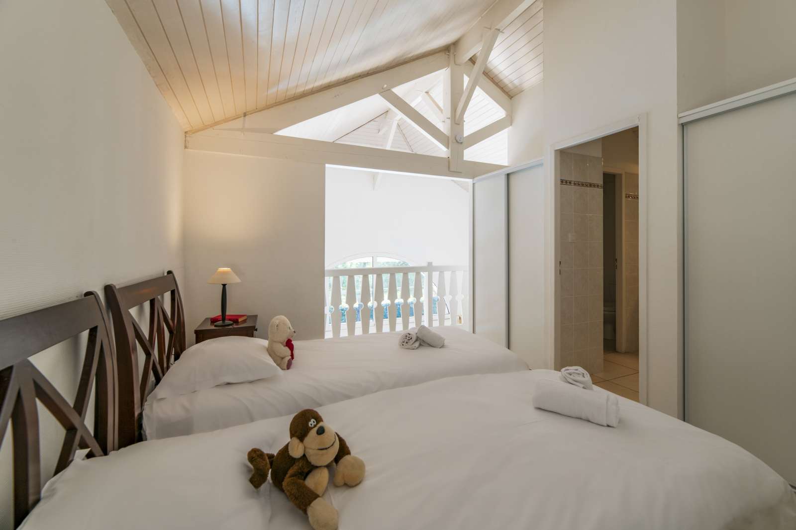 90 m² environ, un séjour, une chambre/suite 1 lit 2 personnes (160x200 cm) avec dressing et une salle de bains, une chambre 2 lits 1 personne, une douche, 2 wc.