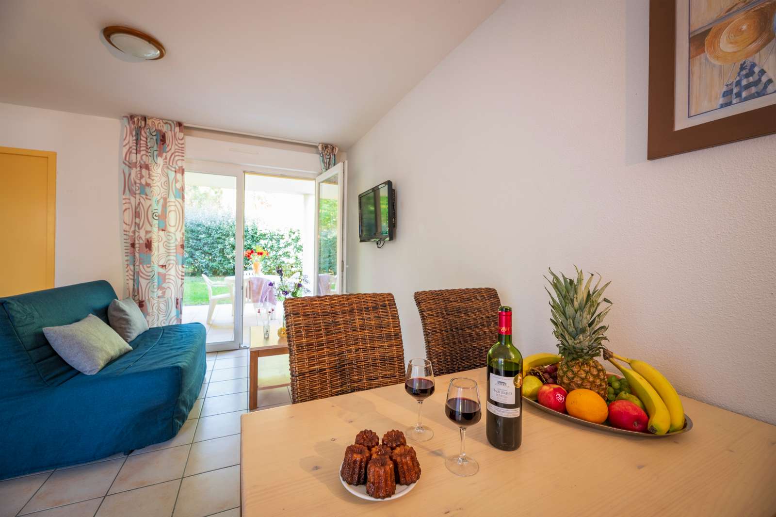 35 m² environ, un séjour 2 personnes, une chambre 1 lit 2 personnes, un jardinet.