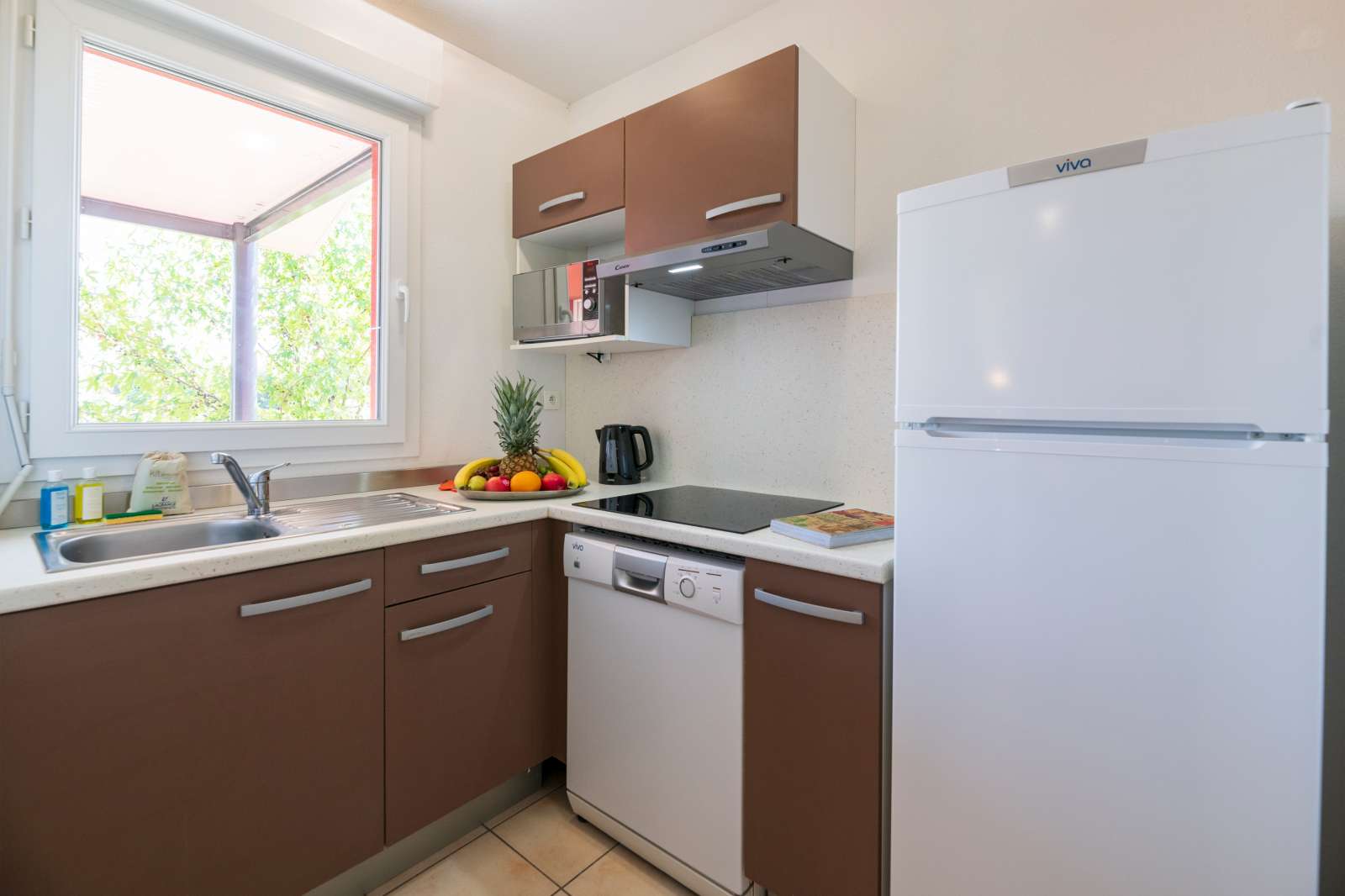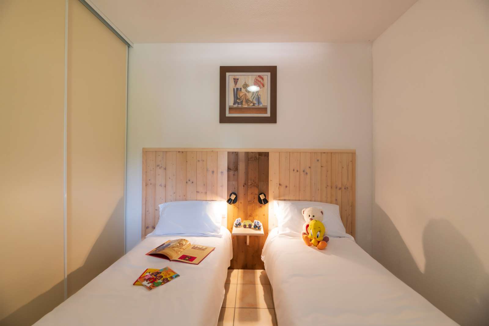 48 m² environ, un séjour 2 personnes, une chambre 1 lit 2 personnes, une chambre 2 lits 1 personne, un jardinet.