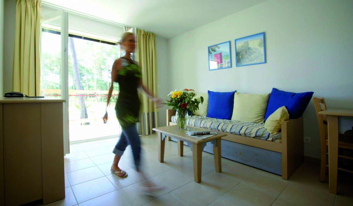 La résidence L'ALLEE DES DUNES est située à 1,5 km des premières plages (navettes gratuites à 400 m en juillet/août), au coeur de la fôret de pins et à 1,5 km du centre et des commerces.