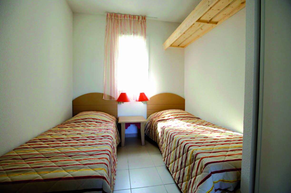 40 m² environ, un séjour avec un canapé-lit 2 personnes, chambre 1 lit 2 personnes, chambre 2 lits superposés ou 2 lits 1 personne, une salle de bains.