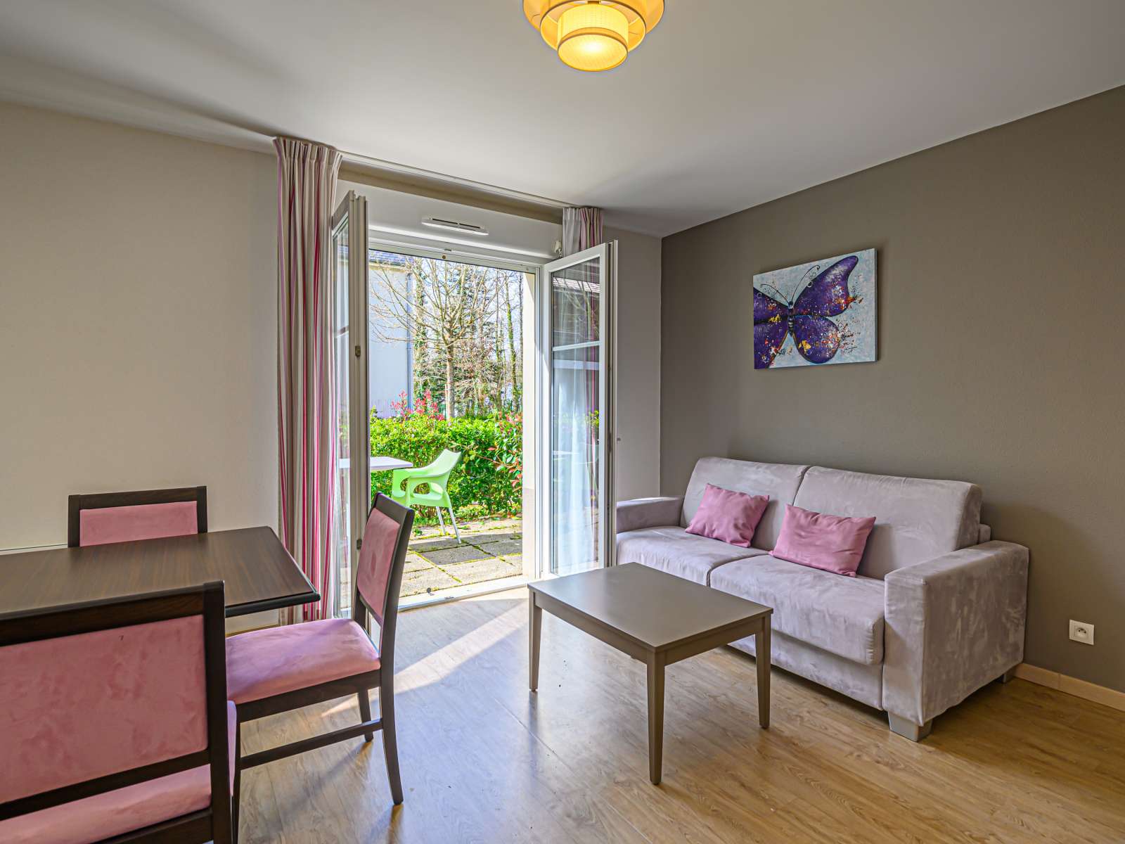 43 m² environ, séjour canapé-lit 2 personnes, chambre 1 lit 2 personnes ou 2 lits 1 personnes. En rez-de-chaussée
