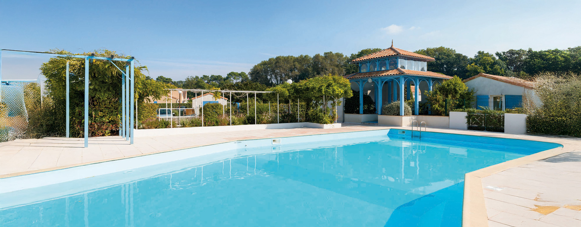 Elle se compose de maisonnettes réparties autour de la piscine.