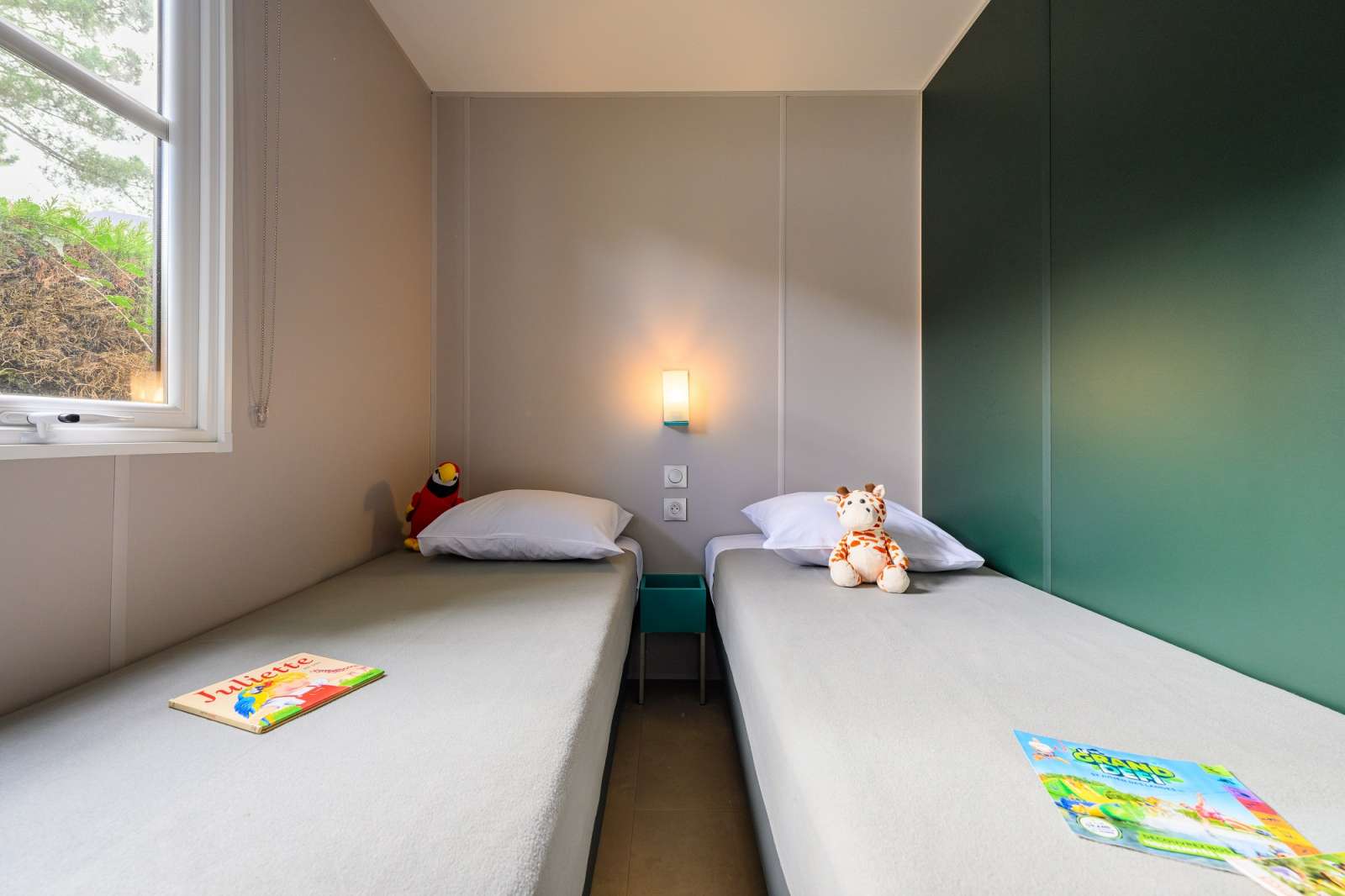35 m² environ, un séjour, une chambre avec 1 lit 2 personnes, deux chambres avec 2 lits 1 personne.