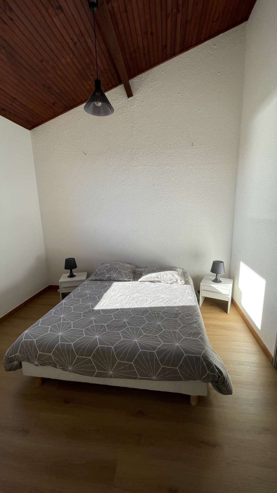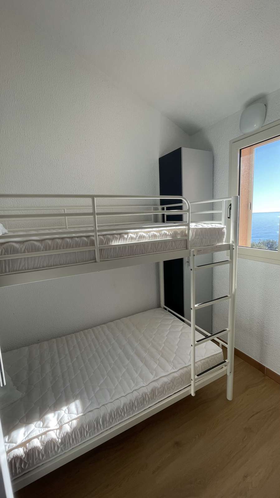 30 m² environ, séjour canapé-lit 2 personnes, chambre 2 lits superposés, terrasse couverte de 9 m².