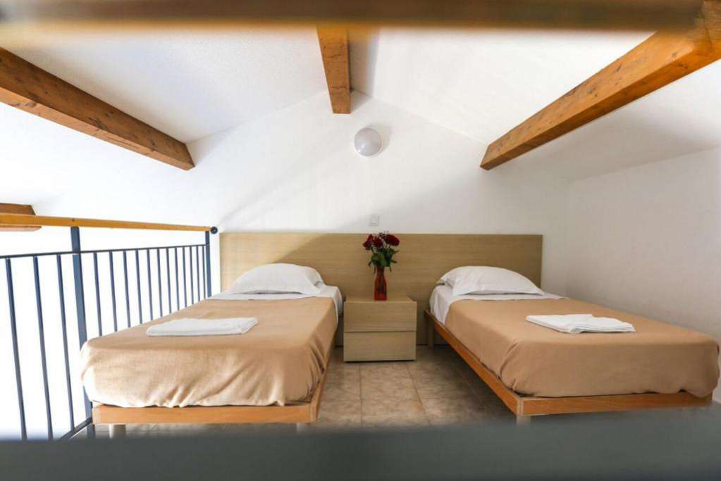 40 m² environ, séjour canapé-lit 2 personnes, chambre 1 lit 2 personnes, chambre 2 lits 1 personne en mezzanine.