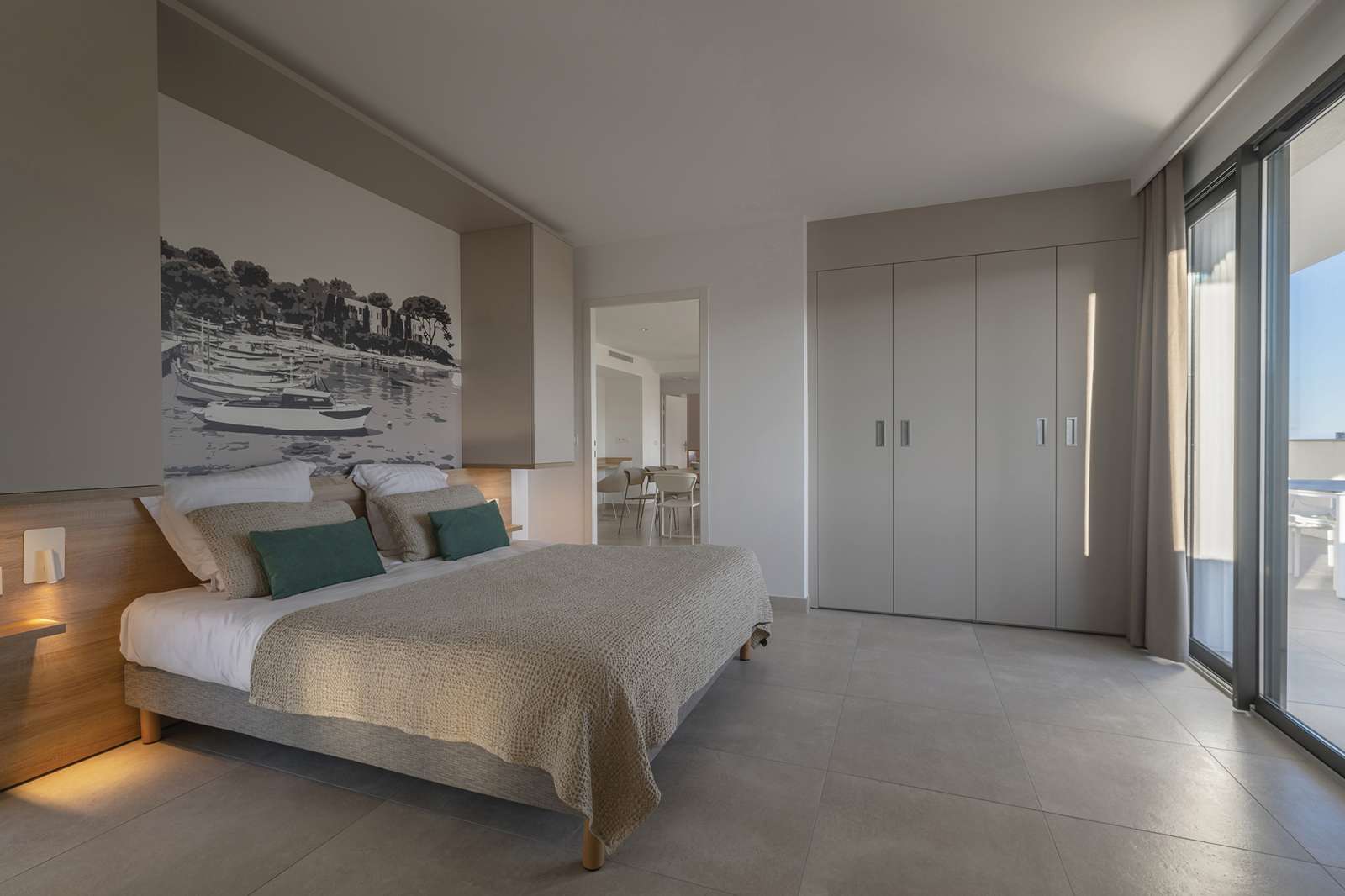 32 m² environ, studio 1 lit 2 personnes, une chambre communicante 2 lits 1 personne, 2 douches. Terrasse
