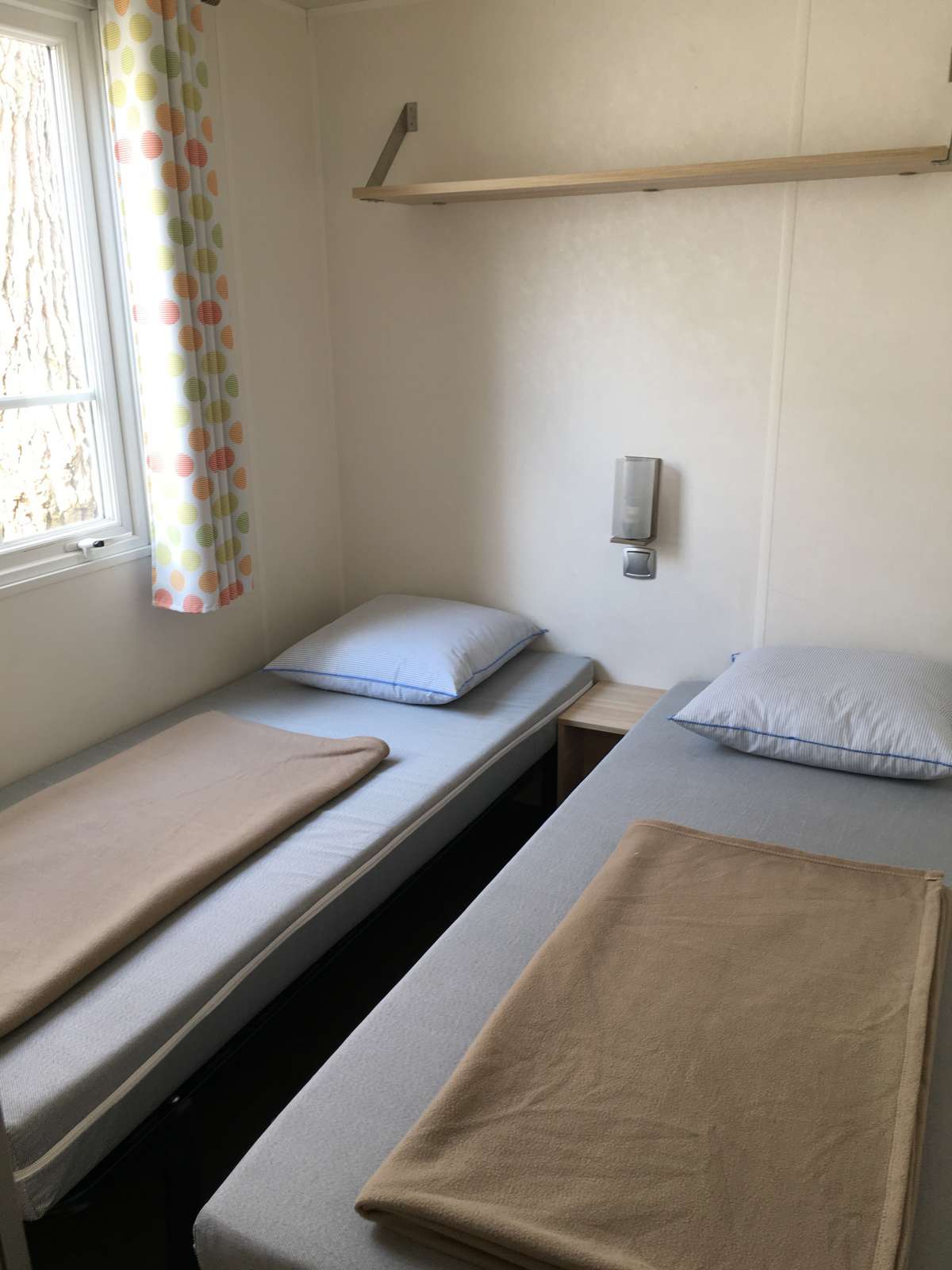 28 m² environ, un séjour, une chambre avec 1 lit 2 personnes et une chambre avec 2 lits 1 personne