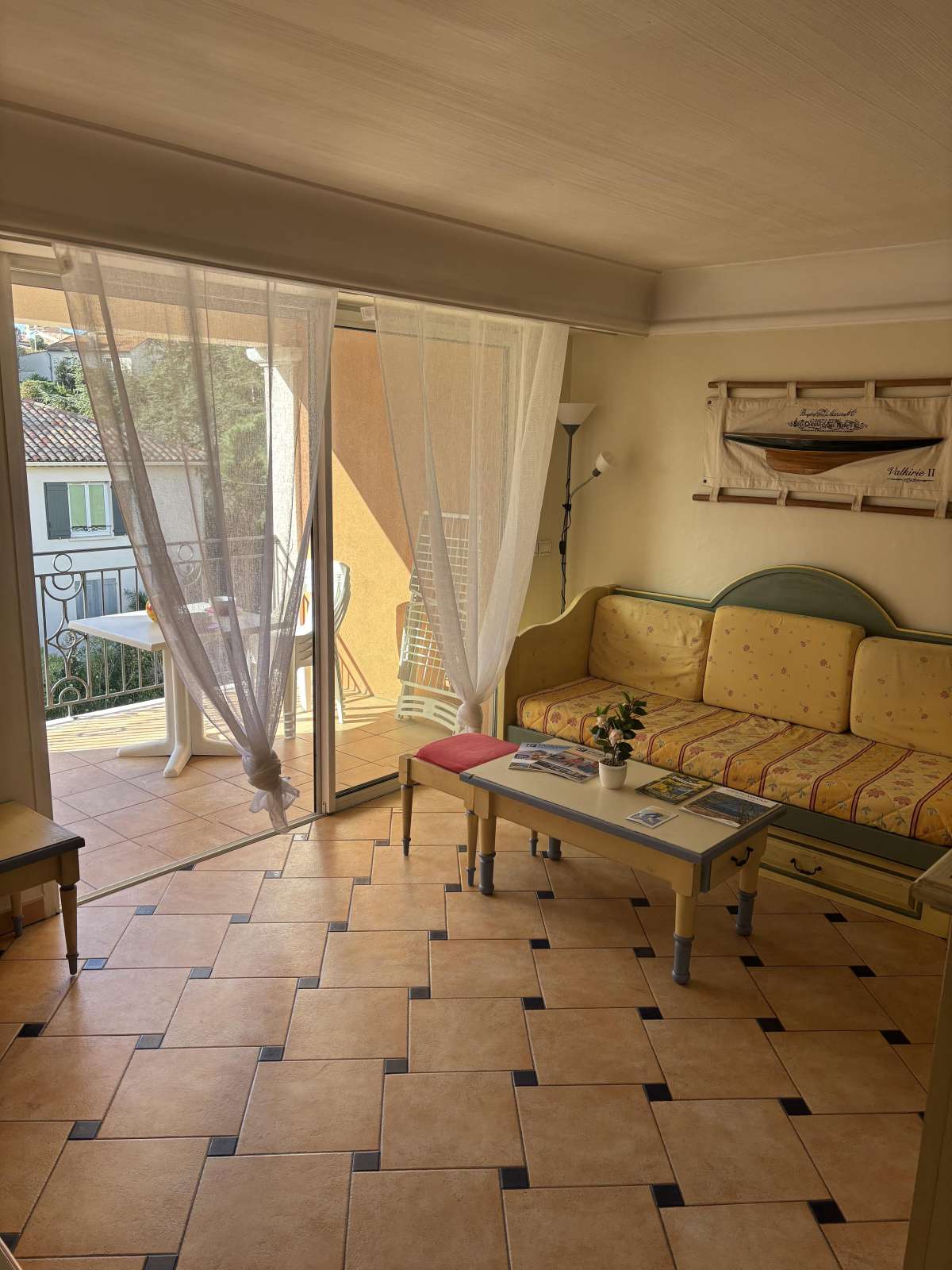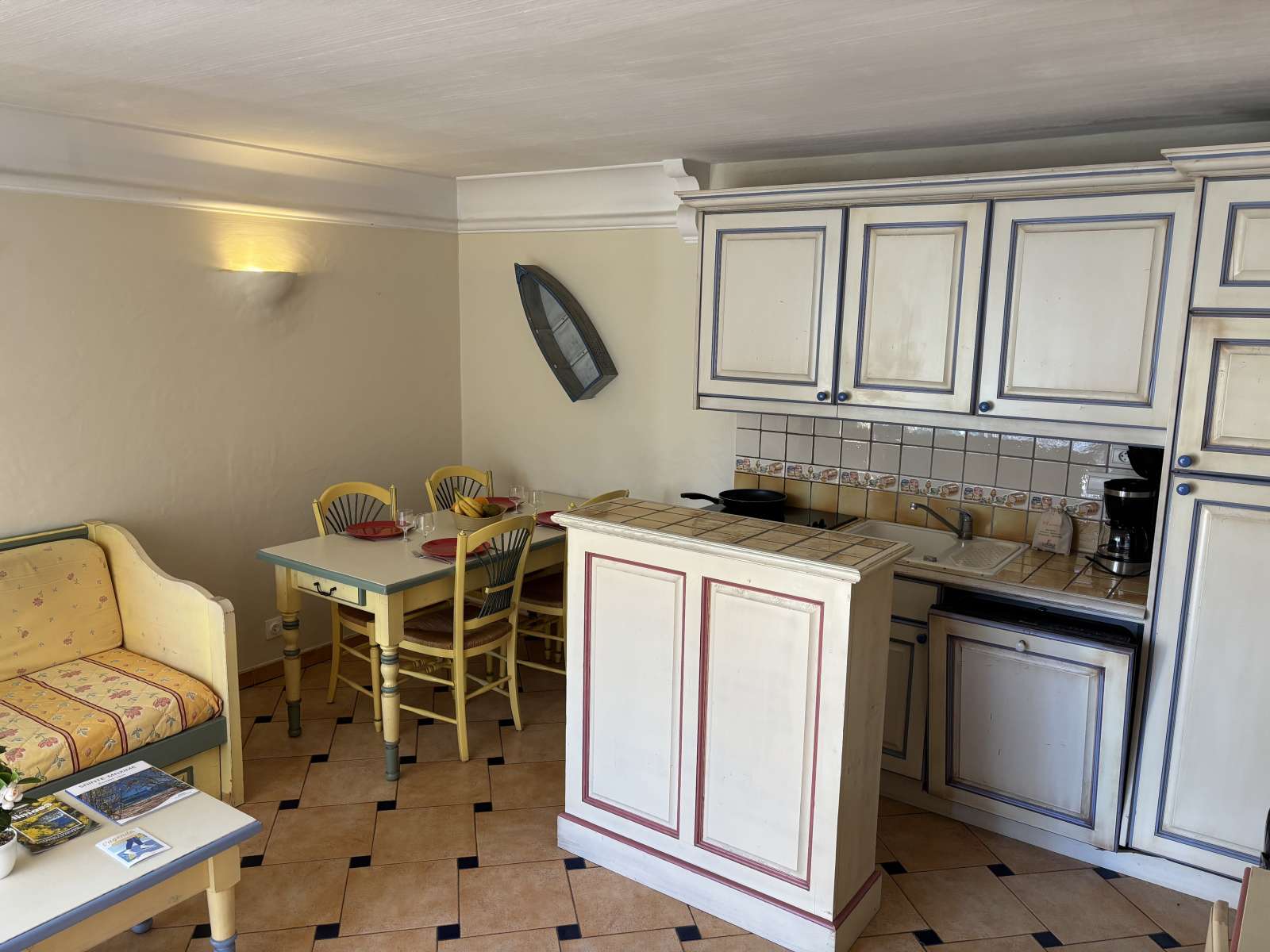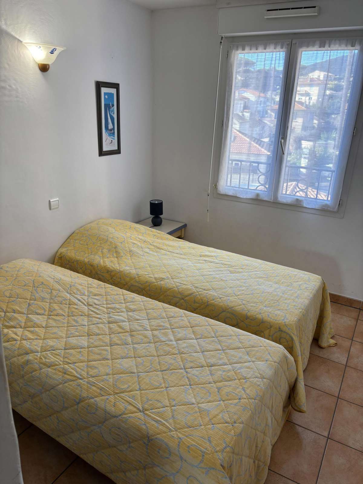 26 m² environ, un séjour avec une banquette lit gigogne, une chambre 1 lit 2 personnes, une salle de bains.