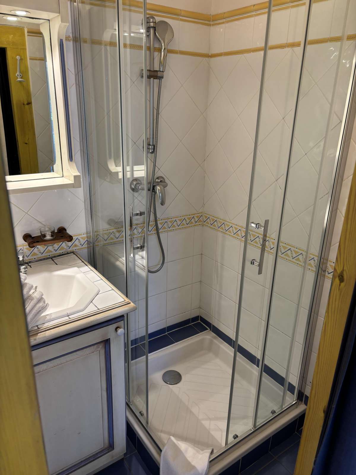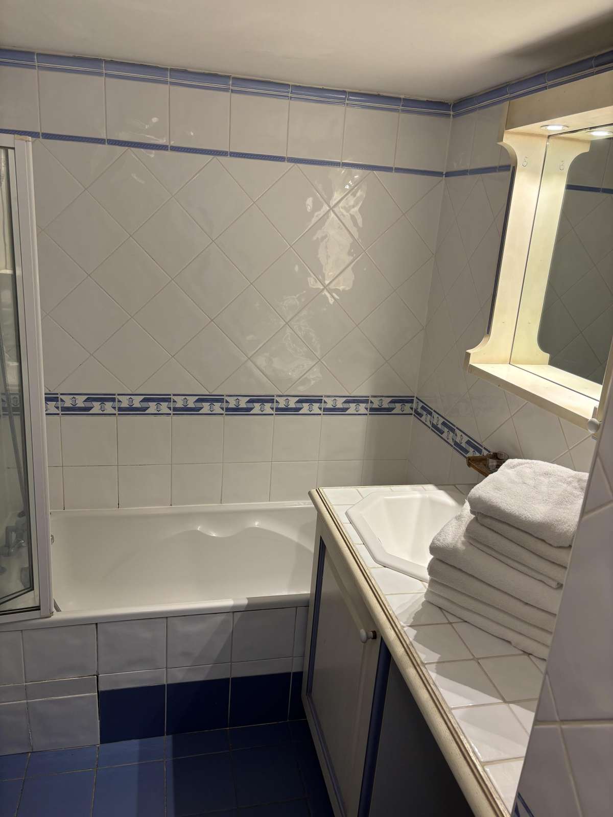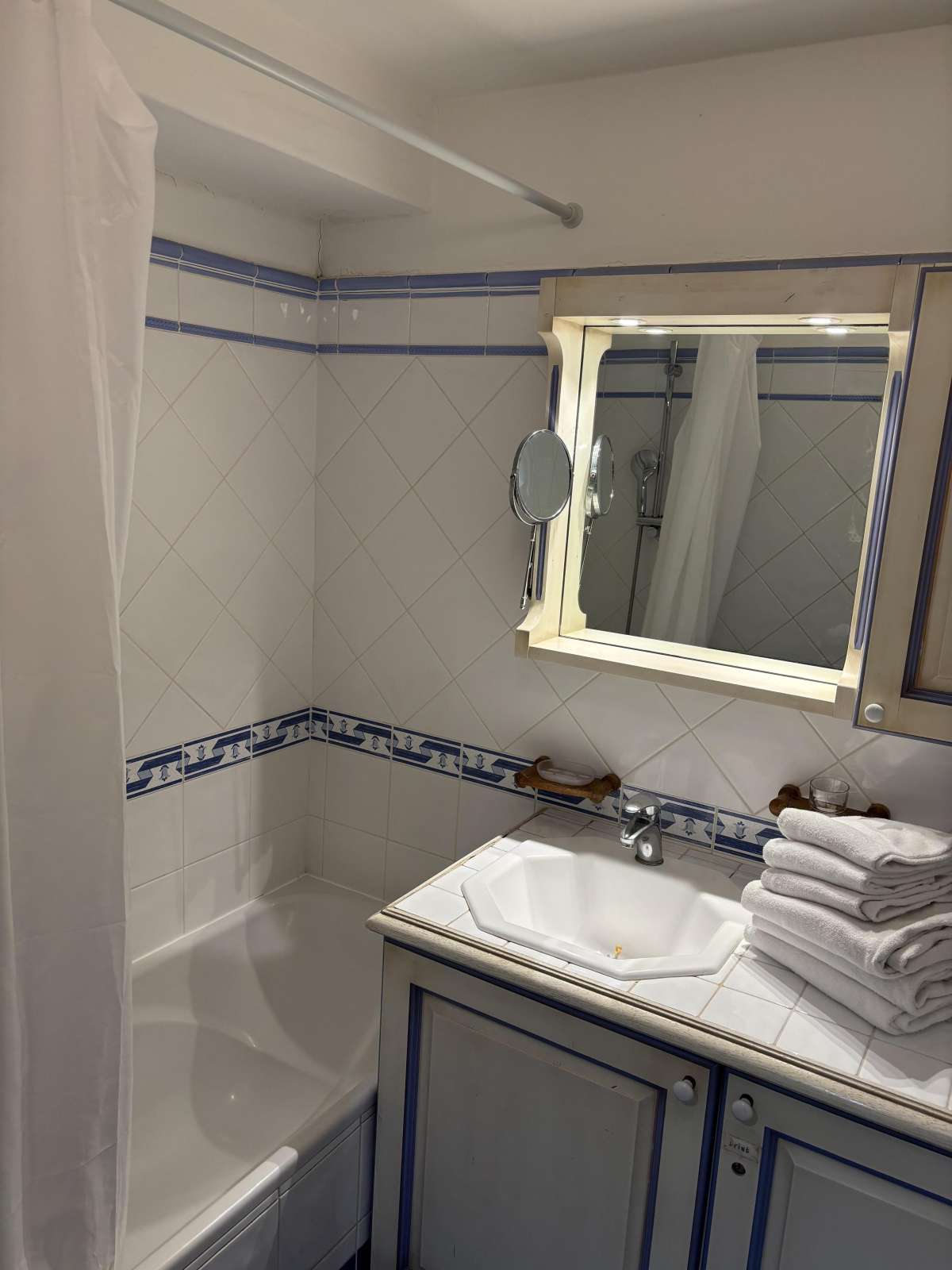 58 m² environ, un séjour avec une banquette lit gigogne, deux chambres 2 lits 1 personne, une alcôve séparée par un rideau 1 lit 1 personne, une salle de bains et une douche.