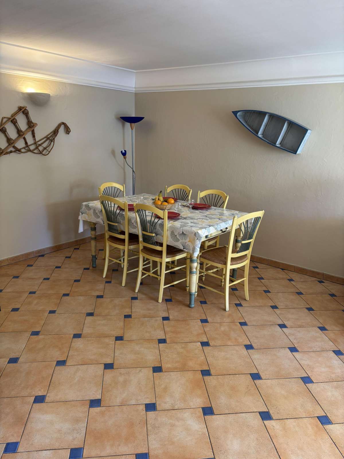 65 m² environ, un séjour avec une banquette lit gigogne, trois chambres 2 lits 1 personne, une salle de bains et une douche.