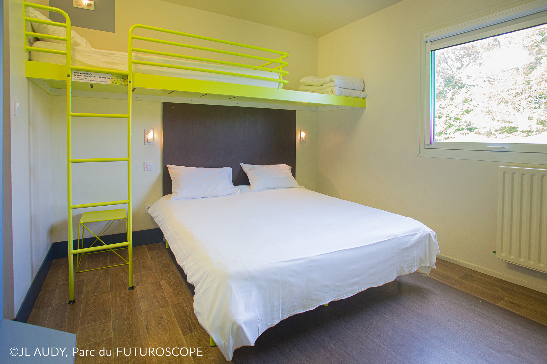 Décor contemporain et zen, différentes chambres de 1 à 5 personnes et son accès direct au parc : idéal pour un séjour en famille ou entre amis.