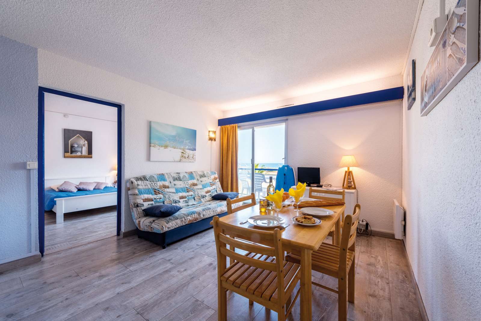 35/45 m², un séjour 2 personnes, une chambre 1 lit 2 personnes avec alcôve 2 lits superposés.