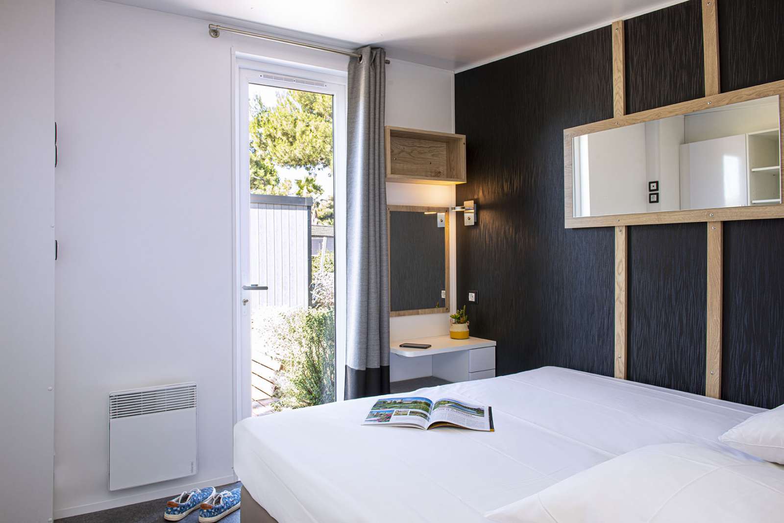 38 m² environ, climatisation dans le séjour, 2 douches, séjour, chambre 2 lits 1 personne, chambre 1 lit 2 personnes, chambre 2 lits superposés.