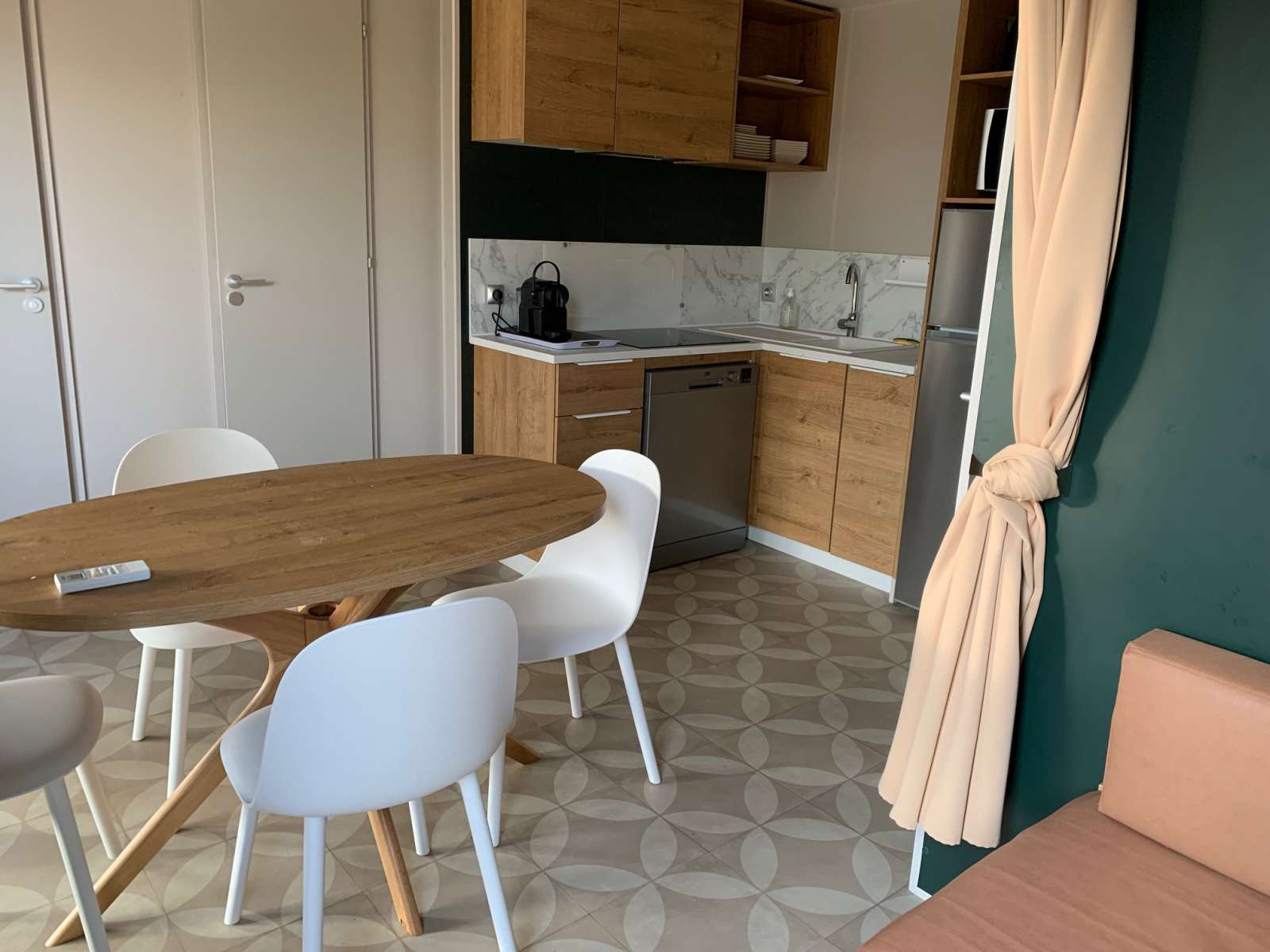 30 m² environ, coin cuisine avec micro-ondes + lave-vaisselle + nespresso, douche, climatisation, coin séjour, chambre 1 lit 2 personnes, chambre 2 lits 1 personne, terrasse semi-couverte avec salon de jardin et 2 chiliennes + plancha (situé dans le nouveau quartier piéton, parking à proximité)