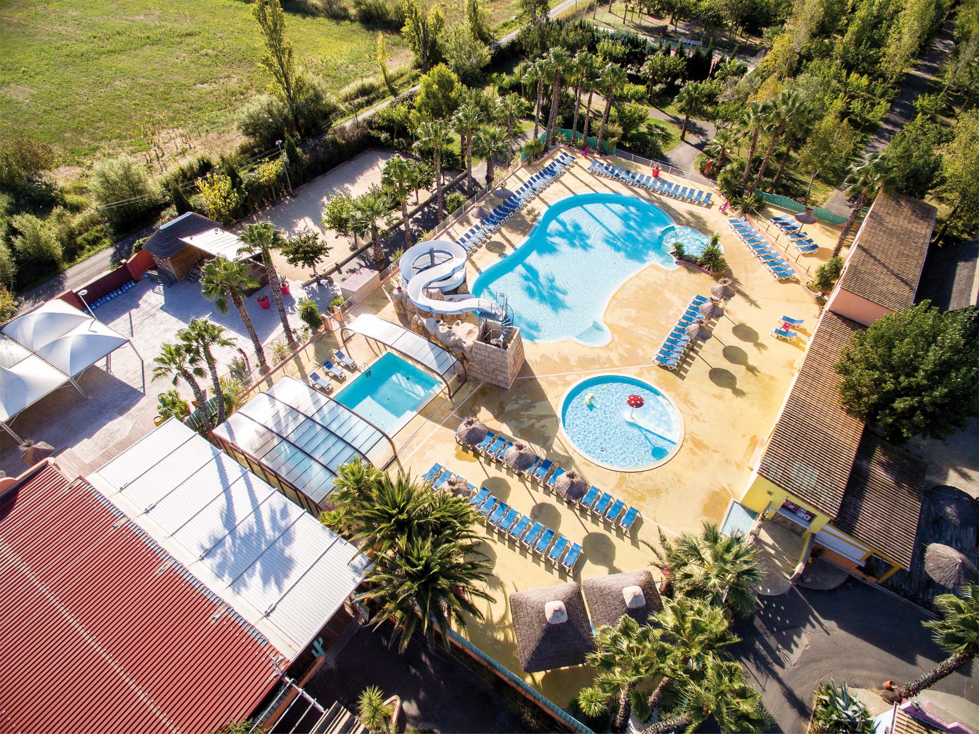 Il se compose de 300 emplacements entre terrains nus et mobil-homes) répartis dans un parc de 7 hectares, en bordure du Canal du Midi.