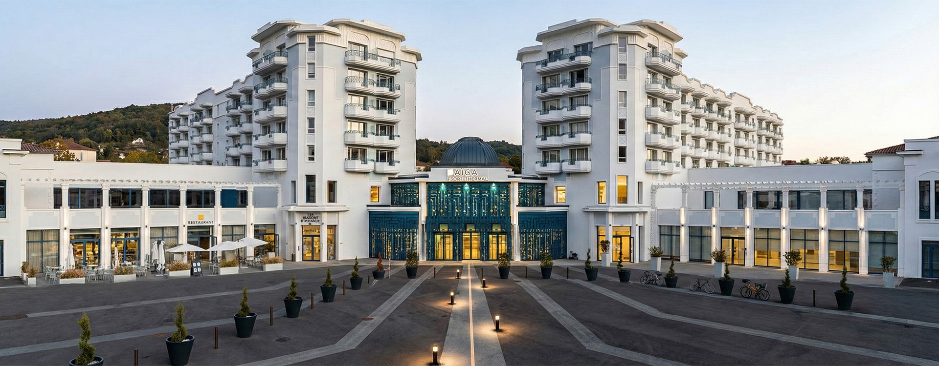 A 100 m du centre-ville et des commerces, Aïga Resort est un complexe thermal avec 1 spa thermal, une résidence de tourisme et un restaurant. La résidence se compose de 90 appartements (ascenseurs).