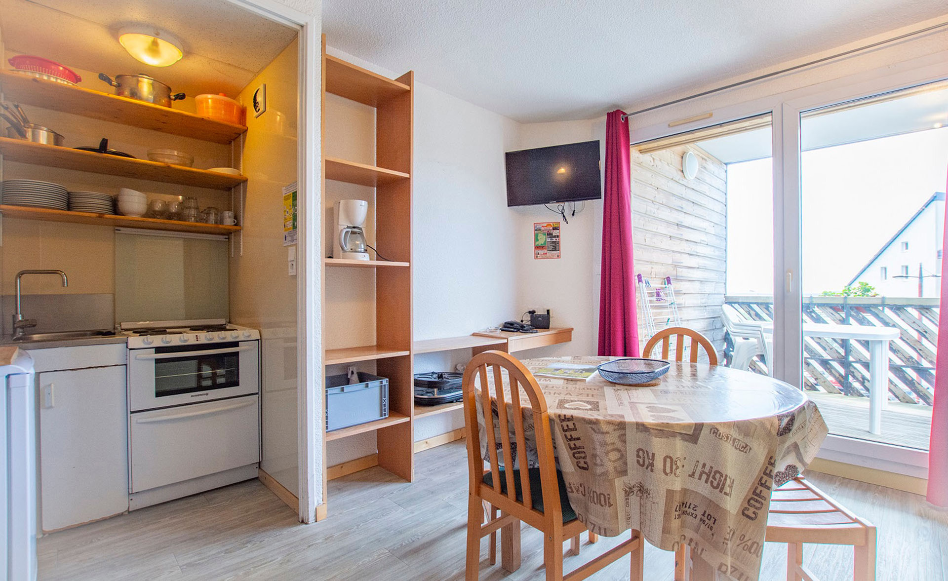 25 m² environ, une salle de bains, un séjour avec 2 lits 1 personne + 2 lits rabattables pour 1 personne en hauteur, balcon.