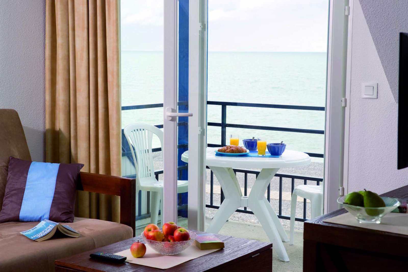 La résidence LES TERRASSES DE LA PLAGE se situe en front de mer, au coeur de la ville et à 25 km du Crotoy. Cette résidence offre un magnifique panorama sur la plage de galets.