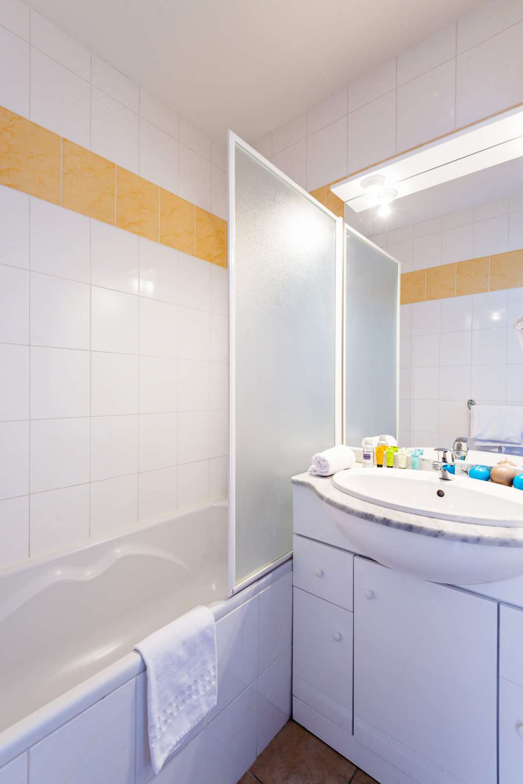 36 m² environ, un séjour avec un canapé-lit gigogne, une chambre 1 lit 2 personnes, une douche (pas de balcon).