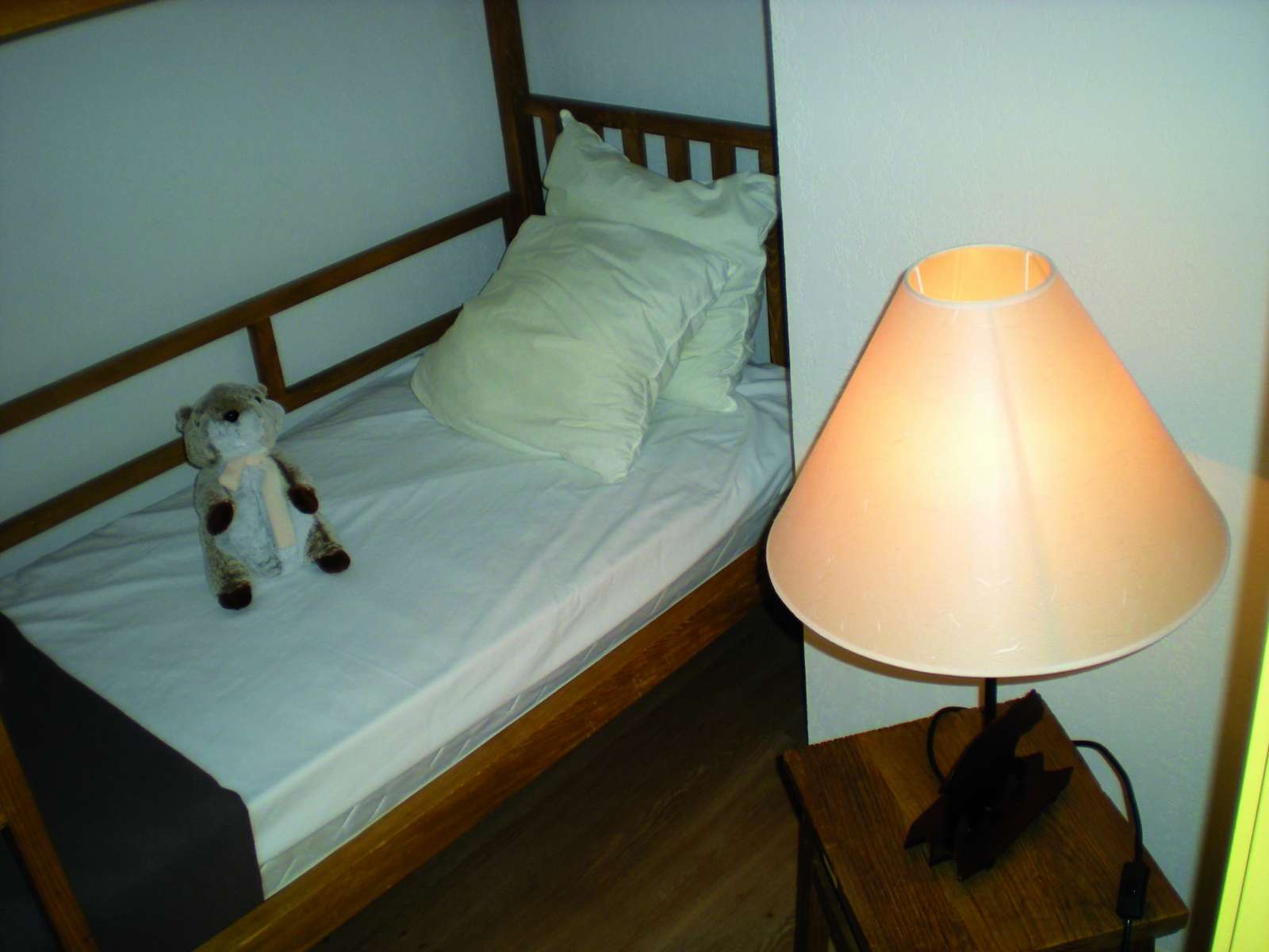 26/39 m², séjour banquette lit 2 personnes, coin montagne avec 2 lits superposés, salle de bains.