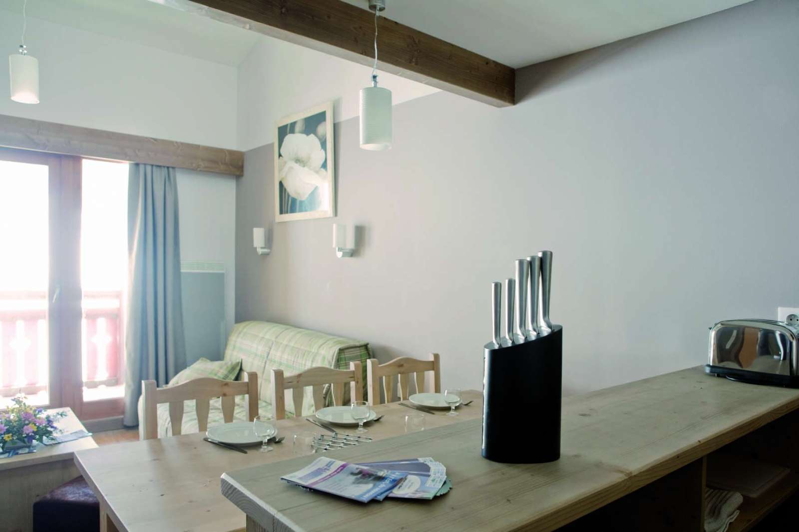 31 m² environ, un séjour pour 2 personnes, une chambre 1 lit 2 personnes, une salle de bains. Côté pistes.